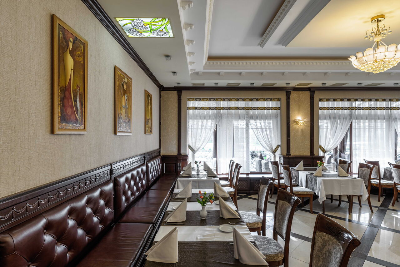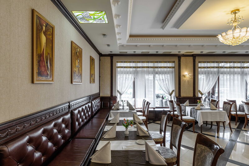 - Самобутній ресторан з дитячим куточком - Наша українська і європейська кухня порадує вас самобутніми та традиційними рецептами. Скуштуйте делікатеси і вишукану їжу, з любов’ю приготовлені нашими шеф-поварами. Спробуйте, для прикладу, надзвичайно смачні сири і рибу у супроводі ароматної кави, фруктових коктейлів, спиртних напоїв, освіжаючих напоїв, чаю, кави з собою, соку фреш, доброго вина або прохолодного пива. Освіжаюче морозиво, різноманітна випічка та неперевершений десерт підкорять ваші серця в якості перекусу або як десерт. Зайдіть до нас на смачний сніданок, бранч, обід або вечерю. Ми пропонуємо безкоштовний Wi-Fi, щоб під час перебування у нас ви могли користуватися інтернетом. Завдяки дитячому куточку ваші діти зможуть гратися, поки ви насолоджуєтеся стравами. Зона для куріння пропонує любителям тютюну забути на хвилинку про повсякденність.